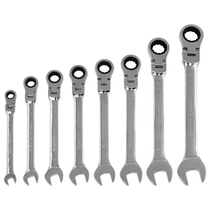 Набор ключей комбинированных трещоточных шарнирных - 8 шт, типоразмеры - 8, 10, 12, 13, 14, 15, 17, 19