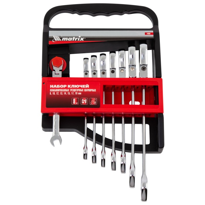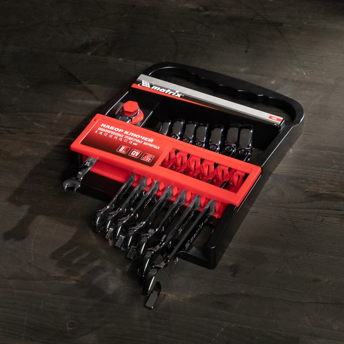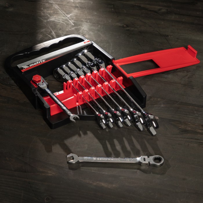 Набор ключей комбинированных, трещеточных шарнирных 8 шт Matrix
