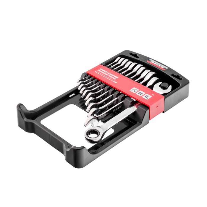 Набор ключей комбинированных, трещоточных - 11 шт, типоразмеры - 8, 9, 10, 11, 12, 13, 14, 15, 16, 17, 19