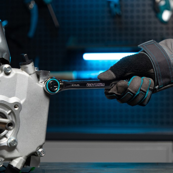 Набор многоразмерных накидных реверсивных ключей с трещоткой Gross 14893 включает 2 инструмента из стали CrV, предназначенных для монтажа и демонтажа крепежа размером 8-19 мм. Каждый из них может заменить сразу 4 ключа, т.к. имеет две накидные рабочие головки с 4 захватами — 8 х 10 мм и 12 х 13 мм у первого ключа и 14 х 17 мм и 18 х 19 мм у второго. 12-гранный профиль позволяет надежно захватывать крепеж. Наличие реверса упрощает работу с резьбовыми соединениями. Набор подходит как для профессионального, так и для самостоятельного ремонта автомобилей.ПреимуществаПрочность и повышенная твердость — ключи изготовлены из высококачественной стали хромованадиевой группы.Долговечность — хромоникелевое покрытие предохраняет инструменты от коррозии.Высокий ресурс — твердость материала трещотки составляет 43-47 HRC, поэтому она устойчива к интенсивным нагрузкам.Удобная работа даже в труднодоступных местах — храповой механизм с 72 зубцами обеспечивает плавную и быструю работу с резьбовыми соединениями (угол отклонения трещотки составляет всего 5 градусов).
