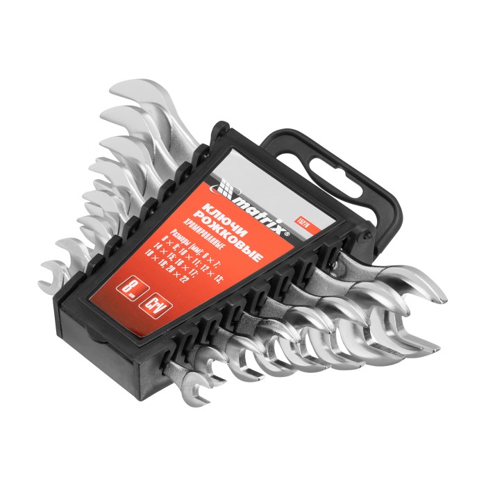 Набор ключей рожковых, 6-22 мм, 8 шт, CrV, хромированные Matrix