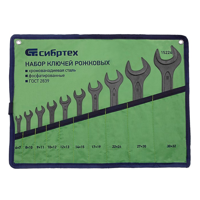 Набор ключей рожковых фосфатированных Сибртех 15224, изготовленный в соответствии с ГОСТом 2839, включает в себя 10 инструментов из стали CrV. Используется для монтажа и демонтажа шестигранных резьбовых крепежей диаметро...