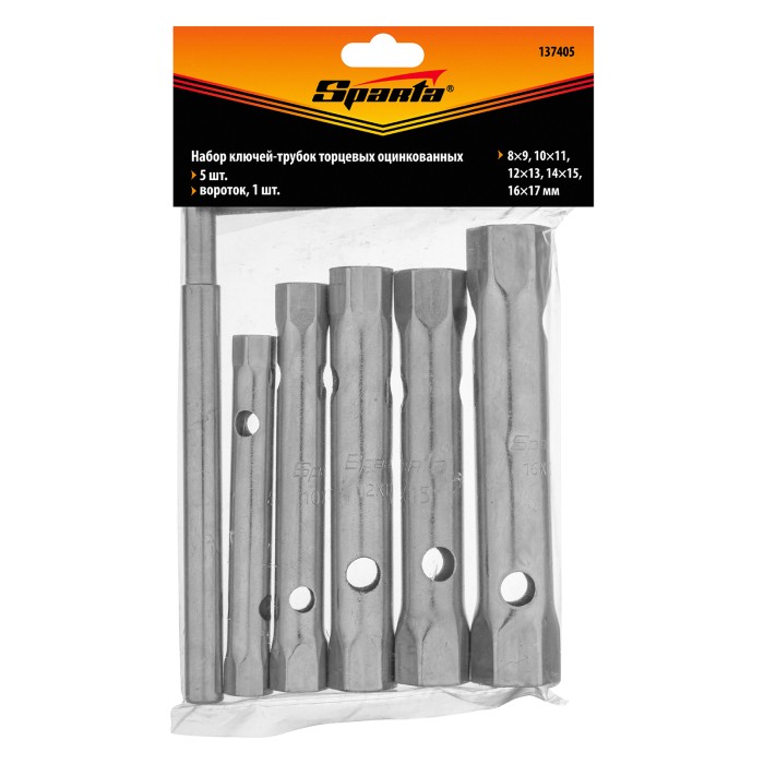 Набор ключей трубчатых торцевых, 8 х 17 мм, вороток, оцинкованные, 6 шт. Sparta
