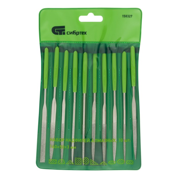 Набор надфилей алмазных, 140 х 50 х 3 мм, 10 шт Сибртех