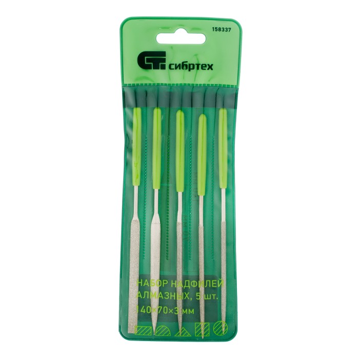 Набор надфилей алмазных, 140 х 70 х 3 мм, 5 шт Сибртех