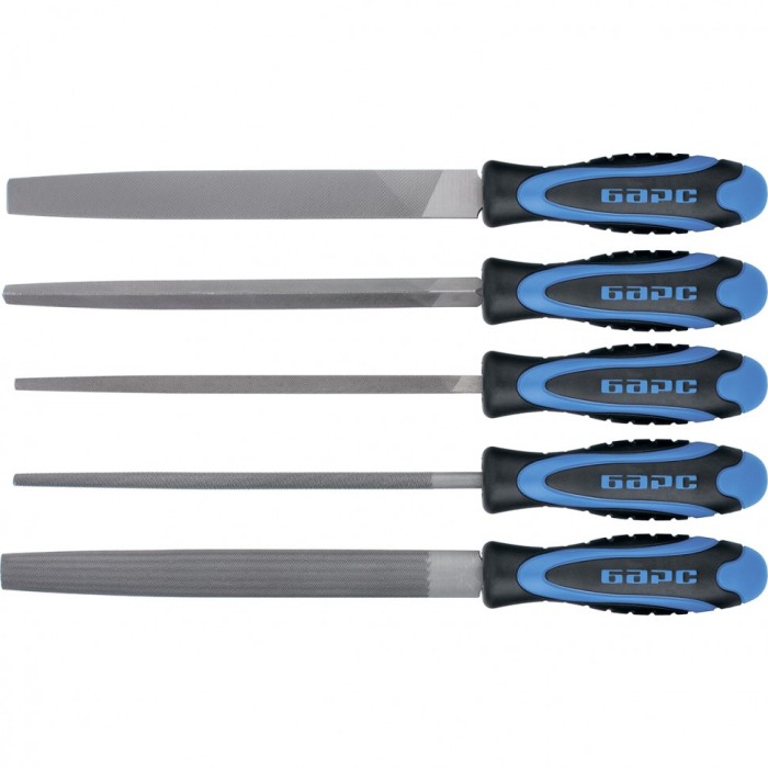 Набор напильников 200 мм, 5 шт, двухкомпонентная рукоятка Барс