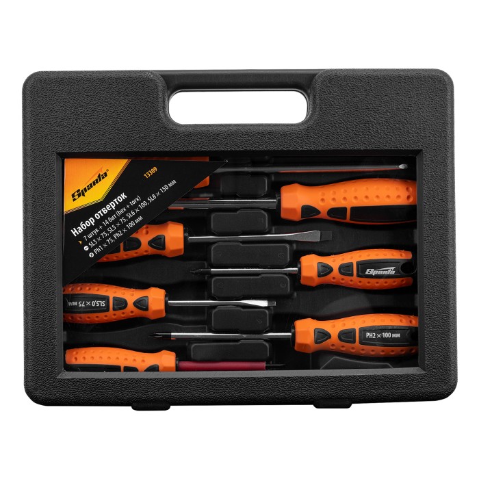 Набор Sparta 13309 включает в себя 21 предмет: отвертки с двухкомпонентными рукоятками и биты длиной 25 мм. Станет недорогим и практичным решением при проведении бытовых ремонтных и монтажных работ. Комплект включает в себя отвертки с крестовым и минусовым шлицем для монтажа/демонтажа крепежных элементов типа PH и SL соответственно. А отвертка-держатель и сменные биты позволяют работать с винтами типа HEX и TORX.ПреимуществаОтвертки выполнены из углеродистой стали, обладают необходимой прочностью и износостойкостью.За счет двухкомпонентных рукояток отвертки не проскальзывают в руке, поэтому с ними комфортно работать.Набор поставляется в кейсе для удобства хранения и транспортировки.Каждую отвертку можно подвешивать благодаря предусмотренному отверстию в рукоятке.