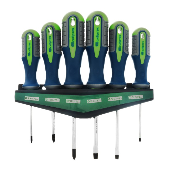Набор отверток, CrV, трехкомпонентные рукоятки, 6 предметов Сибртех