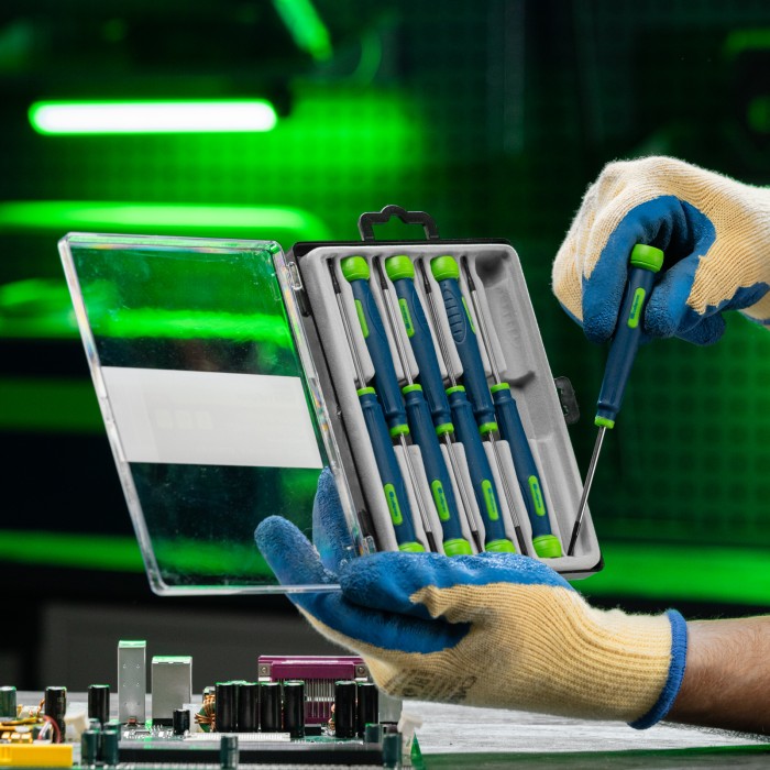 Отвертки для точных работ: T4, T5, T6, PH000, PH00, PH0, SL2, SL3 - 8 штПластиковый кейс - 1 шт