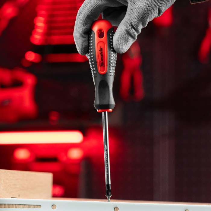 Набор отверток Matrix Fusion 11452 включает 18 инструментов из стали CrV на подвесной полке и предназначен для закручивания и откручивания резьбовых крепежей со шлицами PH, SL и Torx. В комплекте стандартные и прецизионные отвертки для выполнения работ любой сложности. Набор будет полезен во время сборки и установки мебели, а также при проведении ремонта бытовой, компьютерной и мобильной техники.ПреимуществаПрочность и долговечность — стержни выполнены из хромованадиевой стали, твердость рабочих частей составляет 47-52 HRC, поэтому инструменты устойчивы к механическим нагрузкам.Эргономичность — трехкомпонентные рукоятки с рифленой поверхностью не выскальзывают из ладони.Удобное хранение — отвертки размещаются на пластиковой подставке, которую можно поставить на стол или повесить на стену.