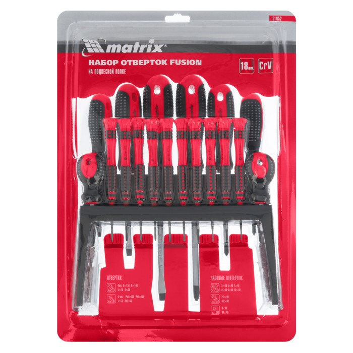 Набор отверток Fusion на подвесной полке 18 шт, CrV Matrix