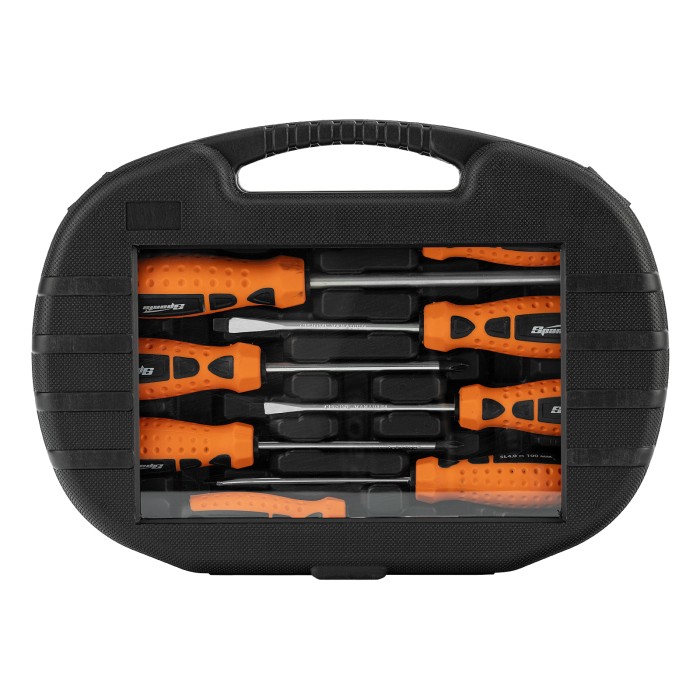 Набор отверток Sparta 133566, из стали СrV, в пластмассовом боксе, пригодится в быту для ремонтных и монтажных работ. В комплект входят отвертки со шлицами «Минус» и «Крест» для монтажа и демонтажа крепежных элементов со...