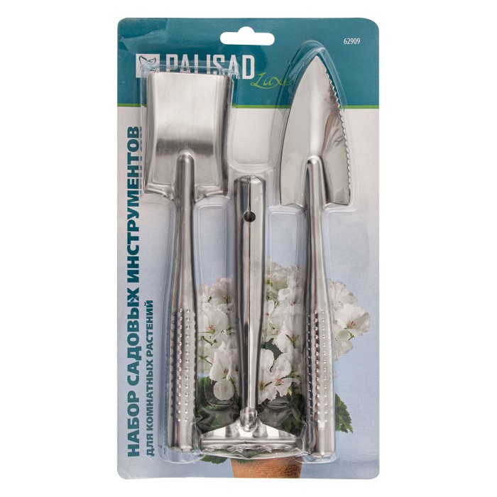 Набор по уходу за комнатными растениями Palisad LUXE 62909 состоит из 3 цельнометаллических предметов и позволяет рыхлить, вскапывать, насыпать грунт, формировать лунки и борозды. Материал инструментов — нержавеющая стал...