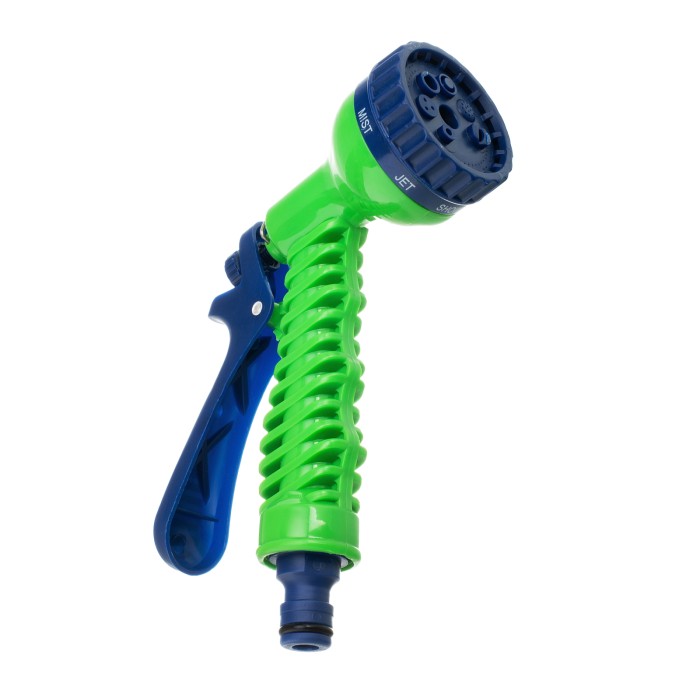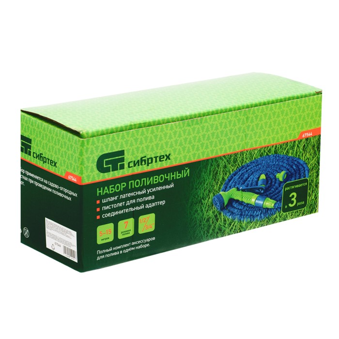 Набор поливочный, растягивающийся шланг 15 м, 7 режимов пистолет, соединитель, адаптер Сибртех