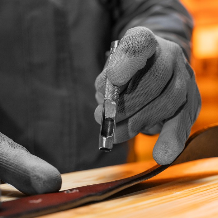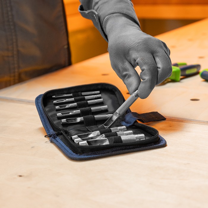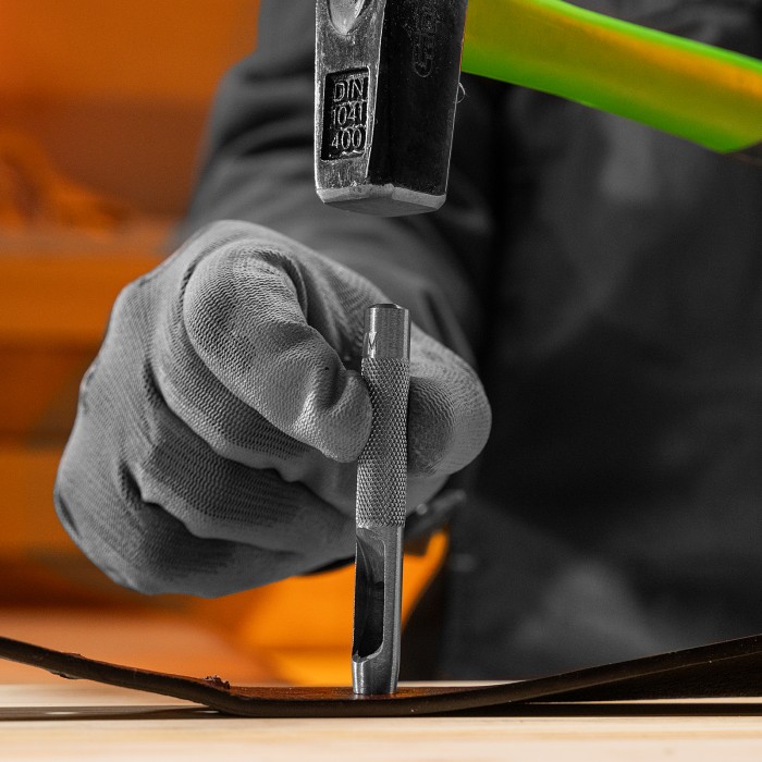 Набор пробойников для кожи Сибртех 18312, 12 шт. в чехле, позволяет пробить отверстия диаметром 3, 4, 5, 7, 6, 8, 9, 10, 12, 14, 16 и 19 мм посредством ударного воздействия от киянки. Инструменты предназначены для работы с плотными материалами: кожей и резиной. Благодаря высокоточной прецизионной заточке режущих кромок пробойники выполняют ровный и качественный рез.ПреимуществаКомплектующие в наборе выполнены из инструментальной стали 45, обеспечивающей их надежность и прочность.Все пробойники в комплекте имеют рельефную рукоятку для надежного захвата и комфортной работы.Набор поставляется в жестком нейлоновом чехле на молнии для удобства транспортировки и хранения.