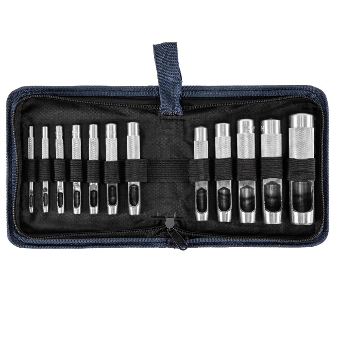 Набор пробойников для кожи 3 4 5 6 7 8 9 10 12 14 16 19 мм, 12 шт, чехол Сибртех