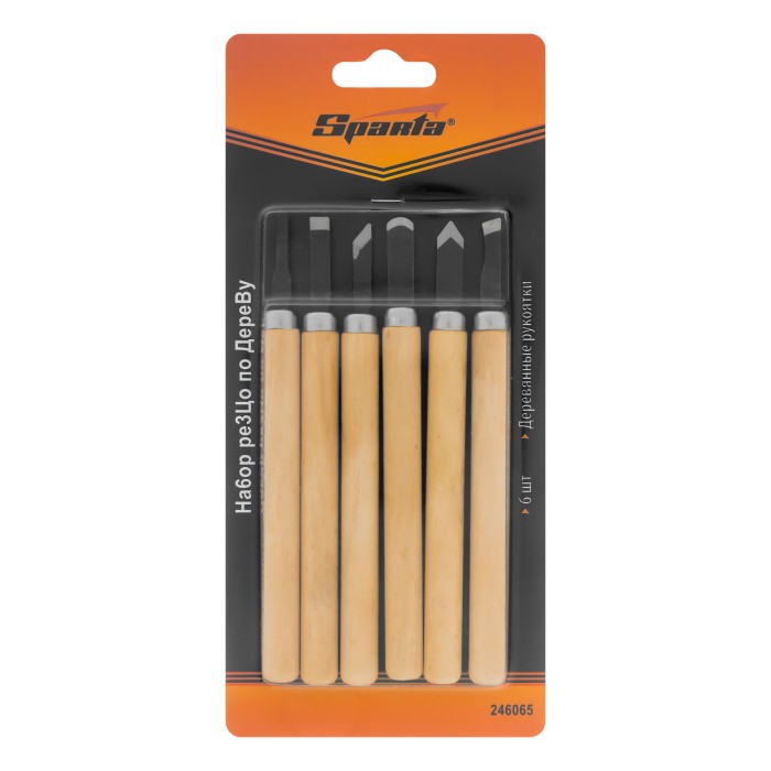 Набор Sparta 246065 включает 6 резцов с деревянными рукоятками, предназначенных для работ по дереву. В комплект входят косой, круглый, плоский, полукруглый, ромбовидный, квадратный и V-образный резцы. Набор оптимален для выполнения геометрической, контурной, ажурной и рельефной резьбы. Будет полезен как опытному, так и начинающему мастеру.ПреимуществаРабочие части из высокоуглеродистой стали характеризуются прочностью и долговечностью.Резцы самых популярных форм подходят для выполнения большинства работ.Рукоятки изготовлены из древесины — экологичного и долговечного материала.