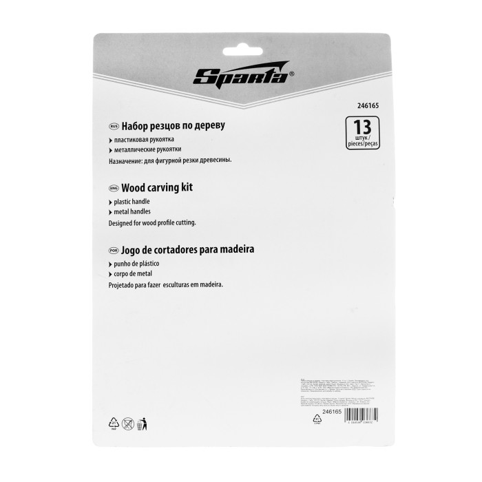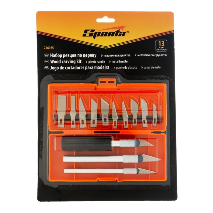 Набор Sparta 246165 включает 13 резцов по дереву и пластмассовую рукоятку. Позволяет выполнять резьбу разного типа: геометрическую, контурную, ажурную и рельефную. Благодаря 3 рукояткам можно заранее подготовить к работе необходимые лезвия.ПреимуществаРабочие части из прочной высокоуглеродистой стали рассчитаны на длительное использование.Входящая в набор полипропиленовая рукоятка с рифлением обеспечивает надежный хват и комфортную работу.Набор поставляется в пластиковом кейсе с магнитным держателем, благодаря которому резцы не рассыплются и не перепутаются во время хранения и транспортировки.