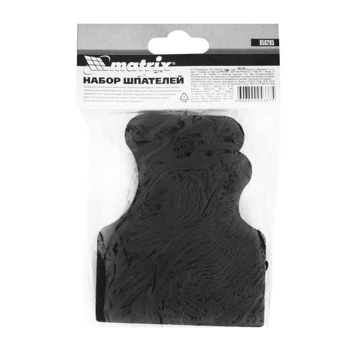 Набор Matrix 858285 включает в себя 3 шпателя из черной резины размером 40-60-80 мм. Используется для создания финишных покрытий, затирки плиточных швов и работы с герметиками. Резиновые рабочие поверхности не оставляют следов и царапин, обеспечивают ровное нанесение материалов.ПреимуществаУниверсальность — набор включает инструменты для работы на участках разного размера.Высокое качество работ — гибкие шпатели позволяют контролировать точность нанесения материалов.Комфортное использование — благодаря эргономичной форме шпатели удобно ложатся в руку.Удобное хранение — в верхней части шпателей предусмотрены отверстия для подвешивания на крючок или скобу.