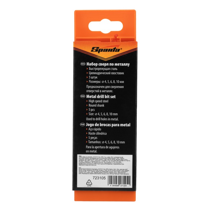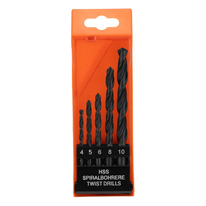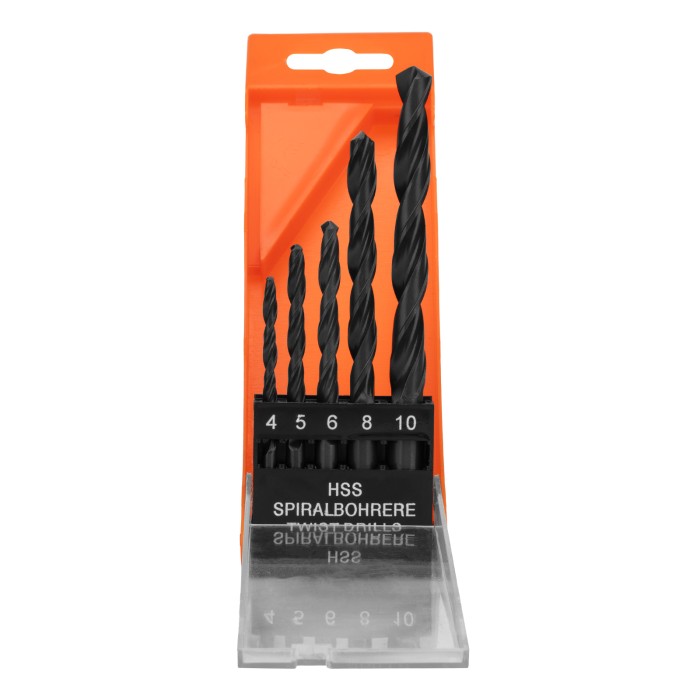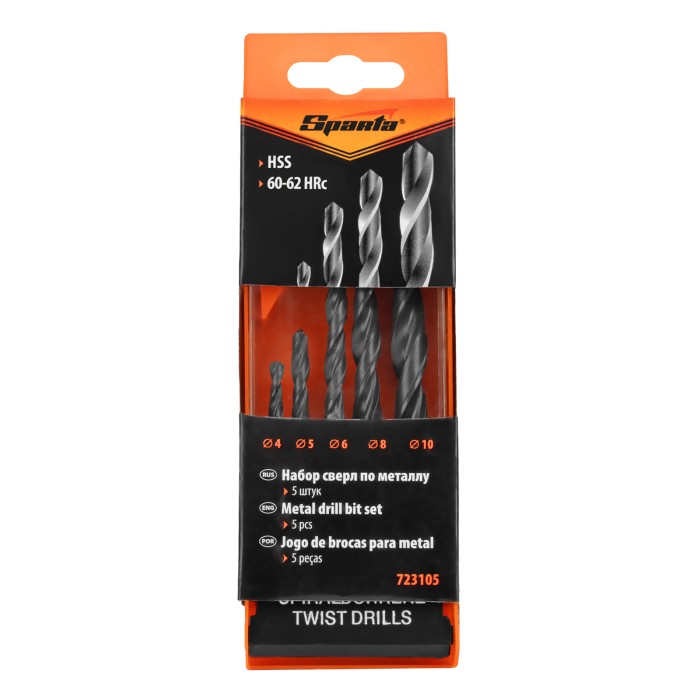 Набор сверл по металлу, 4-5-6-8-10 мм, HSS, 5 шт, пластиковый бокс, цилиндрический хвостовик Sparta