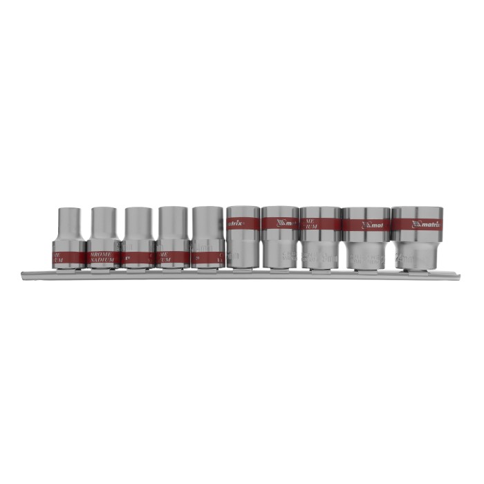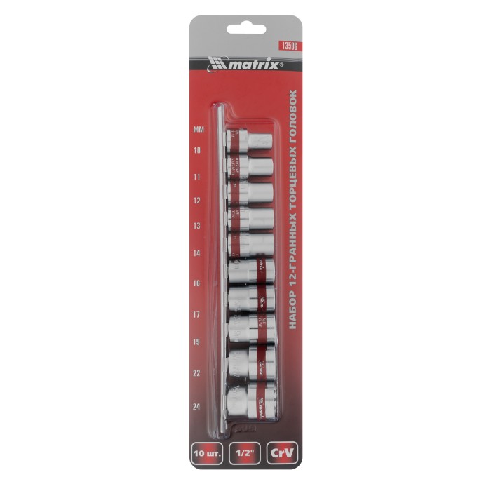 Набор торцевых головок, 1/2", 12 гранные, CrV, 10-24мм, 10 штук Matrix