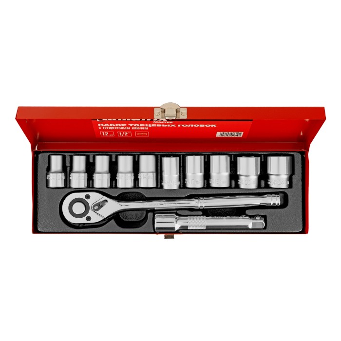 Головки 10, 11, 12, 13, 14, 15, 17, 19, 22, 24 - 10 штУдлинитель 125 - 1 штКлюч трещотка - 1 штКейс - 1 шт
