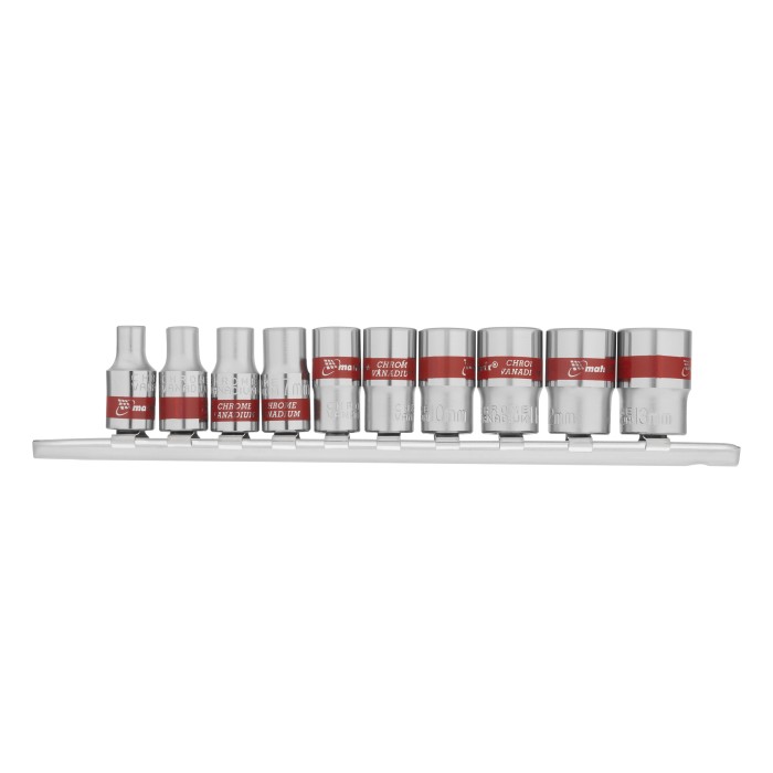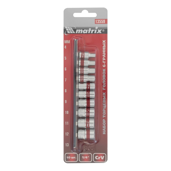 Набор торцевых головок 1/4", 6 гранные, CrV, 4-13мм, 10 штук Matrix