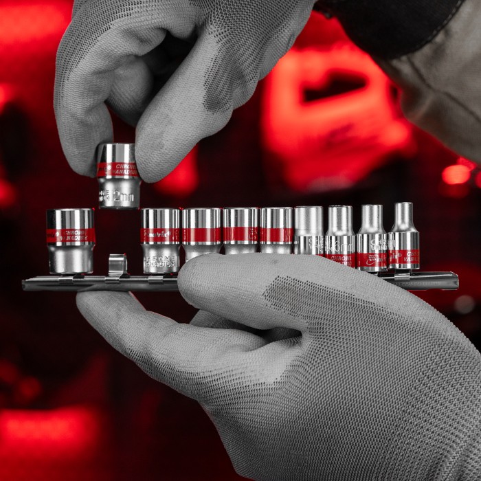 Набор торцевых головок Matrix 13559 из стали CrV, с посадочным гнездом 1/4" и шестигранным профилем, включает 10 насадок диаметром 4-13 мм, предназначенных для работы с резьбовыми соединениями. Оптимален для работы с мелким крепежом. Пригодится для проведения бытового ремонта, будет полезен сантехнику, слесарю, авторемонтнику.ПреимуществаПрочность — торцевые головки из хромованадиевой стали выдерживают повышенные нагрузки.Коррозионная стойкость — на головки нанесено полированное хромоникелевое покрытие.Быстрый поиск нужной насадки — каждая торцевая головка маркирована ярко-красной полоской и имеет обозначение типоразмера.Удобное хранение — для головок предусмотрена плашка-держатель, поэтому они всегда будут под рукой и не потеряются.