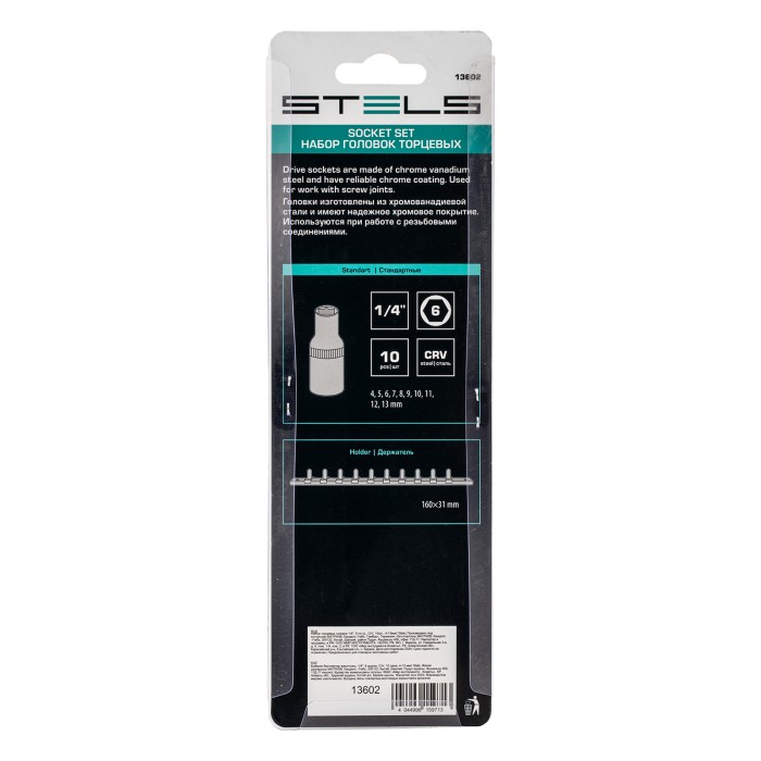 Набор торцевых головок, 1/4, шестигранные, CrV, 10 шт, 4-13 мм Stels