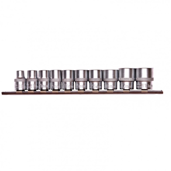 Головка торцевая, 8 мм - 1 штГоловка торцевая, 10 мм - 1 штГоловка торцевая, 11 мм - 1 штГоловка торцевая, 12 мм - 1 штГоловка торцевая, 13 мм - 1 штГоловка торцевая, 14 мм - 1 штГоловка торцевая, 15 мм - 1 штГоловка торцевая, 16 мм - 1 штГоловка торцевая, 17 мм - 1 штГоловка торцевая, 19 мм - 1 штМеталлическая плашка-держатель - 1 шт