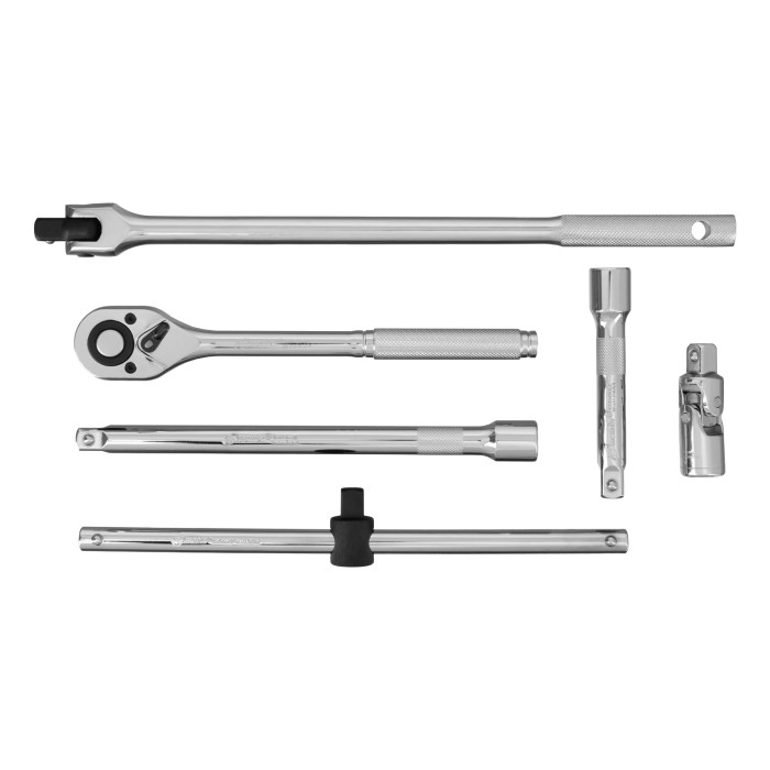 Ключ трещоточный - 1 штКардан - 1 штВоротки Т, L - 2 штУдлинители 125, 250 - 2 штГоловки 10, 11, 12, 13, 14, 15, 16, 17, 18, 19, 20, 21, 22, 23, 24, 27, 30, 32 - 18 штКейс - 1 шт