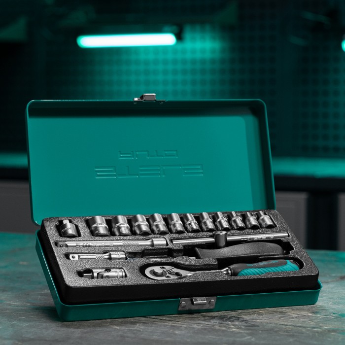 Набор торцевых головок с трещоткой Stels 13573, с присоединительным размером 1/4 дюйма, включает в себя 18 предметов. Он станет незаменимым помощником для специалистов СТО и автолюбителей, пригодится в гараже, поездке, а также дома и на даче. ПреимуществаУдобная работа в труднодоступных местах — трещотка с 72 зубьями позволяет вращать крепеж плавно и мягко.Прочность — инструменты выполнены из термически обработанной инструментальной стали.Встроенный механизм сброса — снятие и установка насадки занимает несколько секунд.Металлические фиксаторы — насадки крепко держатся и не слетают во время работы.Комфортная работа — эргономичная двухкомпонентная рукоятка не выскальзывает из ладони.Удобное хранение и транспортировка — набор поставляется в надежном металлическом кейсе с ложементом.Высокое качество — инструменты изготовлены под строгим технологическим контролем.