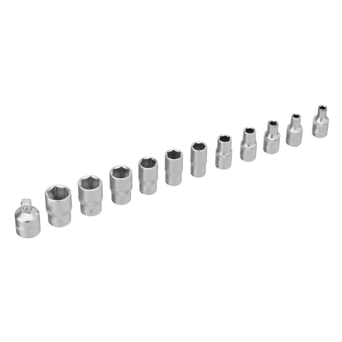 Ключ трещоточный - 1 штВороток Т-образный - 1 штОтвертка-держатель - 1 штКардан - 1 штУдлинители 50, 100 - 2 штАдаптер - 1 штГоловки 4, 4.5, 5, 6, 7, 8, 9, 10, 11, 12, 13 - 11 штКейс - 1 шт