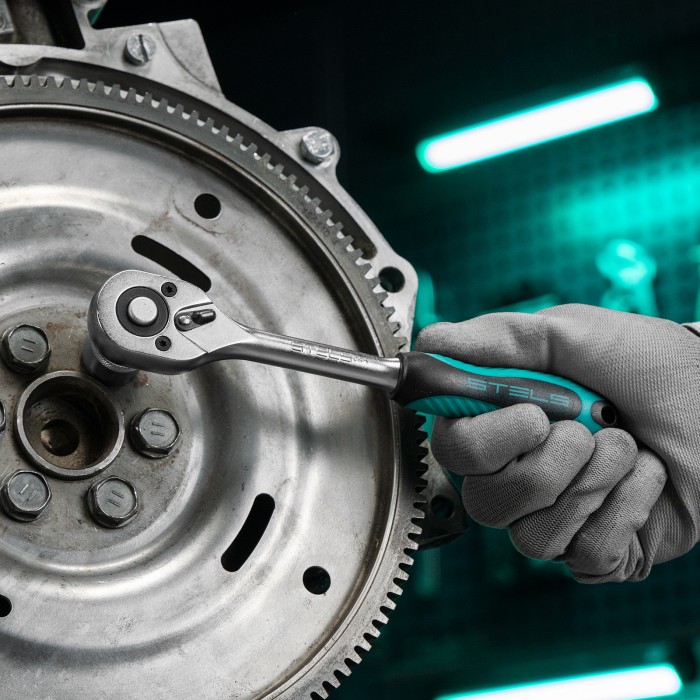 Набор торцевых головок с трещоткой Stels 13575, с присоединительным размером 1/4 и 3/8 дюйма, включает в себя 44 предмета. Он станет незаменимым помощником для специалистов СТО и автолюбителей, пригодится в гараже, поездке, а также дома и на даче. ПреимуществаУдобная работа в труднодоступных местах — трещотка с 72 зубьями позволяет вращать крепеж плавно и мягко.Прочность — инструменты выполнены из термически обработанной инструментальной стали.Встроенный механизм сброса — снятие и установка насадки занимает несколько секунд.Металлические фиксаторы — насадки крепко держатся и не слетают во время работы.Комфортная работа — эргономичная двухкомпонентная рукоятка не выскальзывает из ладони.Удобное хранение и транспортировка — набор поставляется в надежном металлическом кейсе с ложементом.Высокое качество — инструменты изготовлены под строгим технологическим контролем.