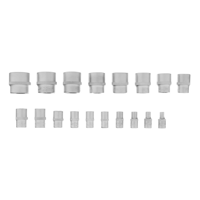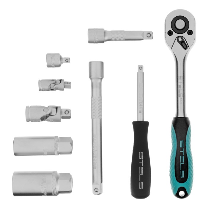 Ключ трещoточный - 1 штУдлинитель - 2 штГоловки - 18 штКардан - 2 штГоловки свечные - 2 штОтвертка-держатель - 1 штПереходник - 1 штБиты с головками - 17 штКейс - 1 шт