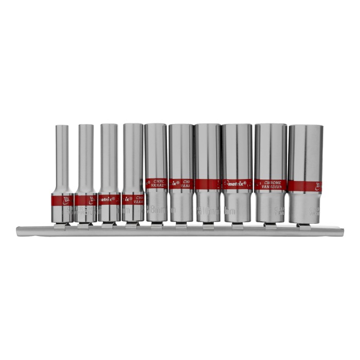 Набор удлиненных торцевых головок 1/4", 6 гранные, CrV, 4-13мм, 10 штук Matrix