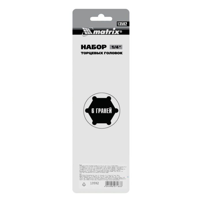 Набор удлиненных торцевых головок Matrix 13592 включает в себя 10 шестигранных насадок 4-13 мм, из стали CrV, с присоединительным квадратом 1/4", предназначенных для работы с резьбовыми соединениями. Торцевые головки с увеличенной длиной применяются для закручивания и откручивания крепежа в труднодоступных местах. Набор востребован у автослесарей, сантехников, а также будет полезен в бытовой сфере.ПреимуществаНадежность — торцевые головки из высокопрочной хромованадиевой стали выдерживают значительные нагрузки.Устойчивость к износу и коррозии — насадки имеют полированное хромоникелевое покрытие.Быстрый поиск нужной насадки — торцевые головки маркированы ярко-красными полосками.Удобное хранение — в комплект поставки входит специальная планка-держатель.