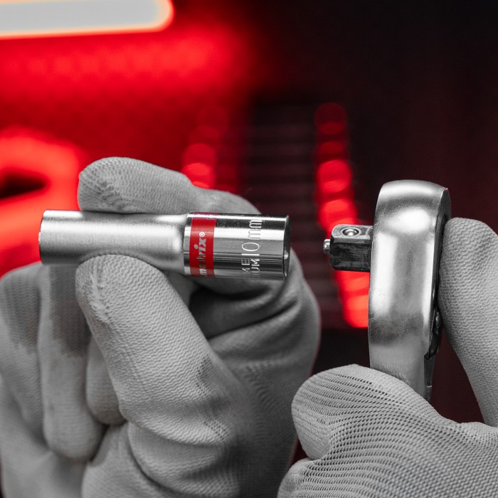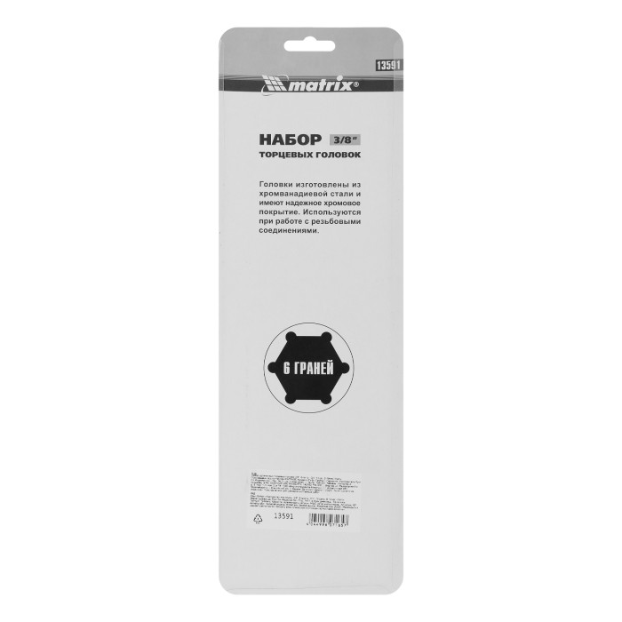 Набор удлиненных торцевых головок Matrix 13591 включает в себя 10 шестигранных насадок 8-19 мм, из стали CrV, с присоединительным квадратом 3/8", предназначенных для работы с резьбовыми соединениями. Торцевые головки с увеличенной длиной применяются для закручивания и откручивания крепежа в труднодоступных местах, а также для извлечения свечей зажигания. Набор востребован у автослесарей, сантехников, а также будет полезен в бытовой сфере.ПреимуществаНадежность — торцевые головки из высокопрочной хромованадиевой стали выдерживают значительные нагрузки.Устойчивость к износу и коррозии — насадки имеют полированное хромоникелевое покрытие.Быстрый поиск нужной насадки — торцевые головки маркированы ярко-красными полосками.Удобное хранение — в комплект поставки входит специальная планка-держатель.