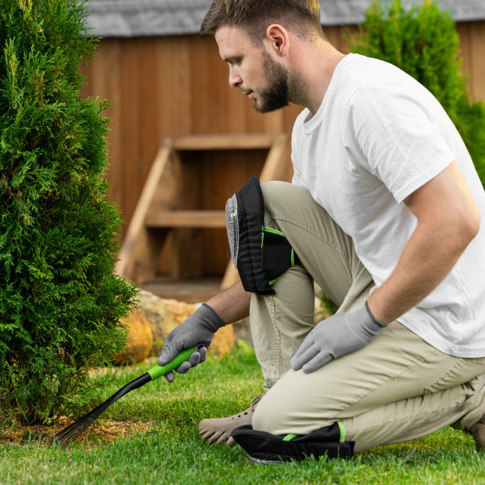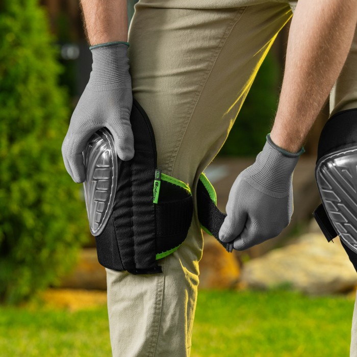 Водонепроницаемые наколенники Сибртех 89414 с рифленой PVC-накладкой и вставкой из этиленвинилацетата (EVA) с гелевой подушкой используются во время проведения строительных, ремонтных, садовых и других видов работ как в помещении, так и под открытым небом. Специальные зоны «гель-комфорт» снимают нагрузку с суставов, обеспечивая повышенное удобство использования. Наколенники анатомической формы и универсального размера подойдут всем пользователям.ПреимуществаКомфортная работа — мягкие вставки из EVA предохраняют коленные суставы от давящих нагрузок, а ударопрочные чашки из PVC-пластика обеспечивают защиту от травм и не деформируются.Быстрая фиксация — для крепления на ногах предусмотрены мягкие и широкие эластичные ремни на «липучках».Морозостойкость — наколенники можно использовать при температуре до -25 °C.