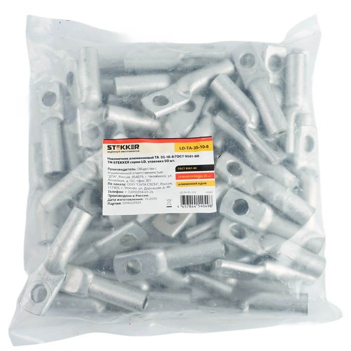 Наконечник алюминиевый STEKKER; М10 35 - ; , алюминий марки АД1М, ,...