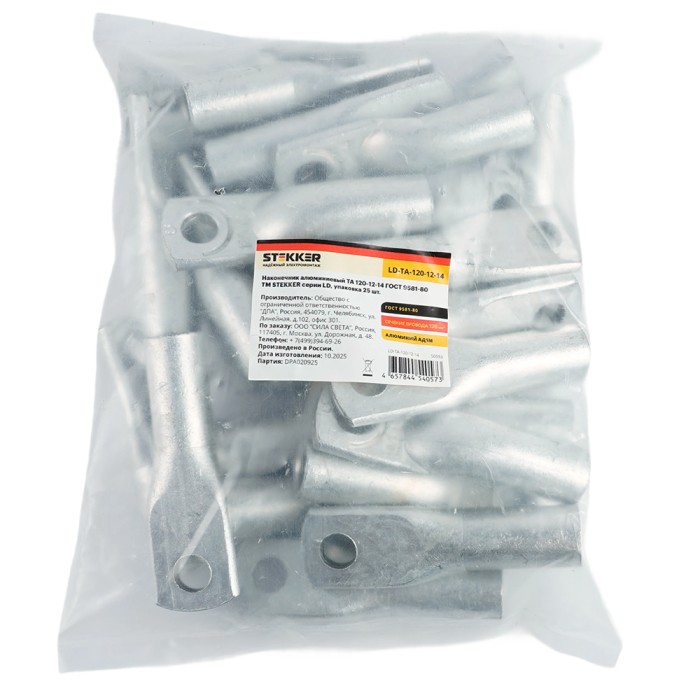 Наконечник алюминиевый STEKKER; М12 120 - ; , алюминий марки АД1М, ,...