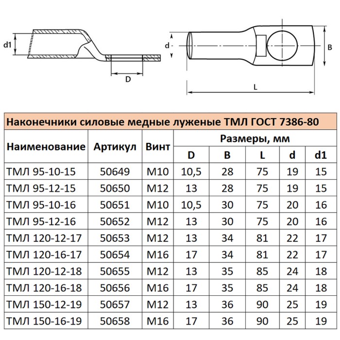 Наконечник медный STEKKER; М10 95 - ; , медь марки М2, ,...