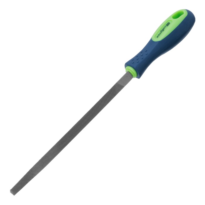 Трехгранный напильник Сибртех 16024, длина рабочей части 150 мм, с насечкой №2 и двухкомпонентной рукояткой, используется для ручной доводки металлических деталей, придания им нужной формы и размера. Оптимален для обработки треугольных отверстий, граней, пазов, внутренних углов. Насечка №2 с 13-25 зубьями на 1 см длины обеспечивает точную шлифовку после применения драчевого напильника. Инструмент будет полезен мастерам и любителям слесарного дела.ПреимуществаДолговечность — напильник изготовлен из высокоуглеродистой стали У13А, характеризующейся прочностью и устойчивостью к нагрузкам.Высокое качество опиловки — на полотно нанесена перекрестная насечка, в которой вспомогательные мелкие зубцы обеспечивают шлифовку материала.Комфорт во время работы — эргономичная двухкомпонентная рукоятка удобно лежит в руке и не выскальзывает из ладони.Удобное хранение — в тыльной части рукоятки имеется отверстие для подвешивания.