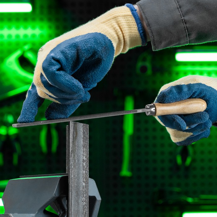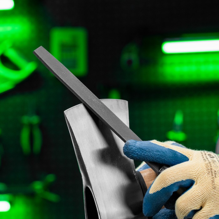 Плоский напильник Сибртех 16226 с полотном длиной 200 мм и деревянной ручкой предназначен для опиливания металлических заготовок. Позволяет придать им нужную форму или размер, а также зачистить поверхность от заусенцев. Двойная перекрестная насечка №2 обеспечивает быструю и качественную опиловку твердых металлов. Напильник пригодится в слесарной мастерской, а также дома, на даче или в гараже.ПреимуществаПрочность — инструмент из углеродистой стали выдерживает повышенные нагрузки.Долговечность — лаковое покрытие защищает рукоятку от рассыхания.Комфортная работа — деревянная рукоятка удобно ложится в руку.