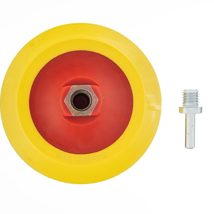 Мягкая насадка для дрели и УШМ с «липучкой» Matrix 76212 диаметром 125 мм устанавливается на дрель или болгарку с максимальной частотой вращения 12000 об/мин. Предназначена для фиксации полировальных и абразивных кругов с креплением под «липучку». Благодаря демпферной вставке из мягкого полиуретана круг плотно прилегает к обрабатываемой поверхности. Насадка используется для проведения шлифовальных и полировальных работ.ПреимуществаБыстрая фиксация и замена оснастки — круг на ворсовой подложке крепится на контактную поверхность с крючками за несколько секунд.Широкие возможности применения — в комплект поставки входит адаптер-переходник с резьбой М14 и хвостовиком для крепления на дрель.Защита от коррозии — крепежная гайка и переходник оцинкованы.