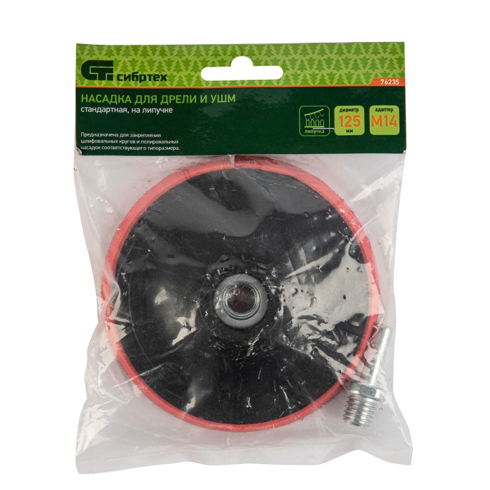 Насадка (опорная тарелка) ТМ Сибртех 76235 предназначена для проведения шлифовальных и полировальных работ с помощю абразивных кругов и полировальных насадок с креплением velcro (под липучку) соответствующего типоразмера...