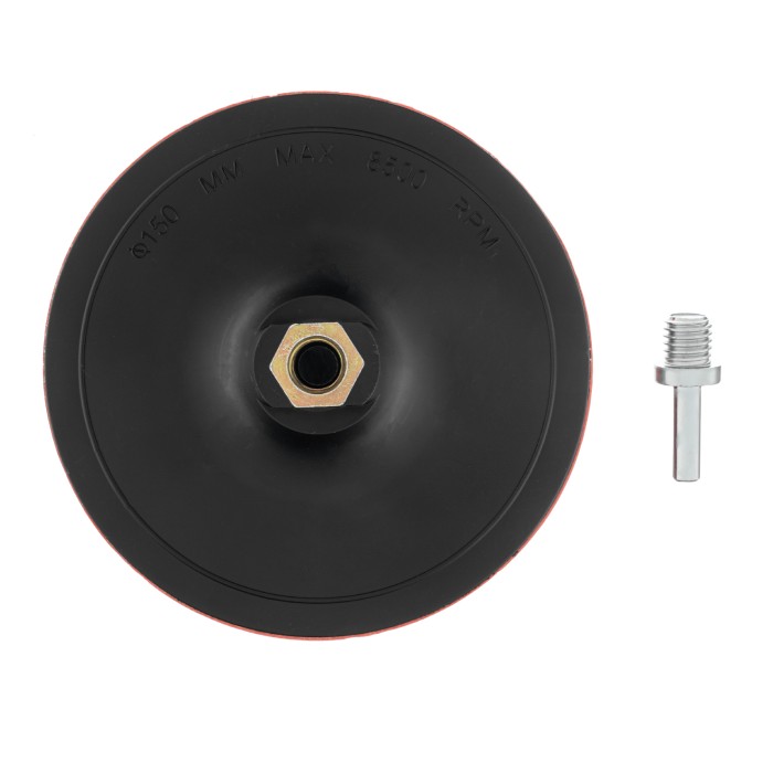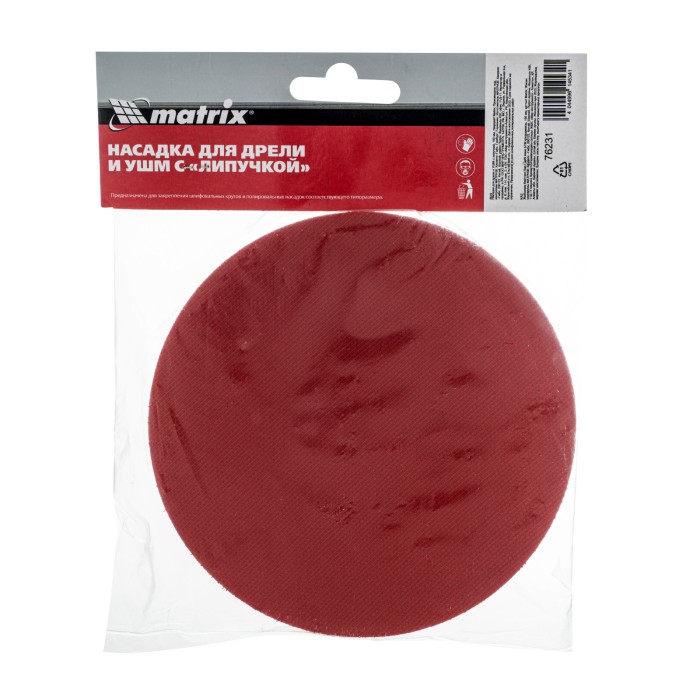 Твердая насадка для дрели и УШМ Matrix 76231 диаметром 150 мм, с «липучкой», используется совместно с углошлифовальными машинами и дрелями, работающими с частотой вращения до 8500 об/мин. Применяется для шлифовки и полировки металла, древесины и пластика. На опорную тарелку крепится абразивный или полировальный круг с системой фиксации velcro. Насадка изготовлена из прочного полипропилена и обеспечивает высокую производительность во время черновой обработки.ПреимуществаНадежная фиксация и быстрая замена круга под «липучку» — нейлоновая рабочая поверхность оснащена крючками velcro.Возможность установки на дрель — в комплекте имеется адаптер-переходник с резьбой М14 и хвостовиком диаметром 8 мм для фиксации в патроне инструмента.Защита от коррозии — посадочная гайка и переходник оцинкованы.