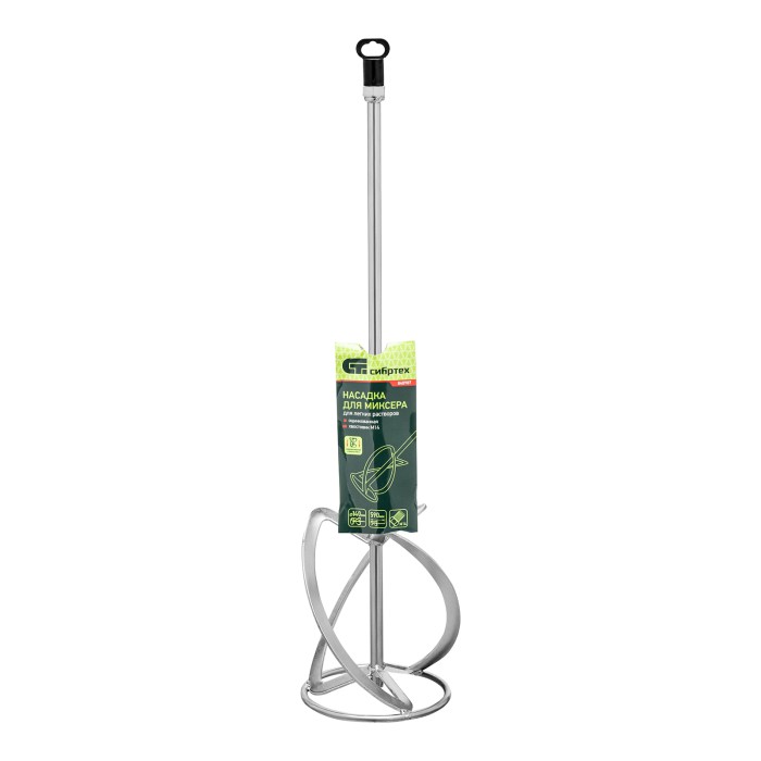 Оцинкованная насадка для миксера Сибртех 848987, 140 х 590 мм, с хвостовиком М14, — оснастка для специализированных перфораторов, предназначенная для приготовления лаков, красок, клеевых смесей и других легких жидких рас...