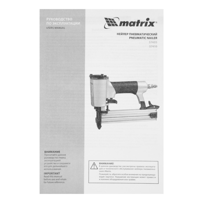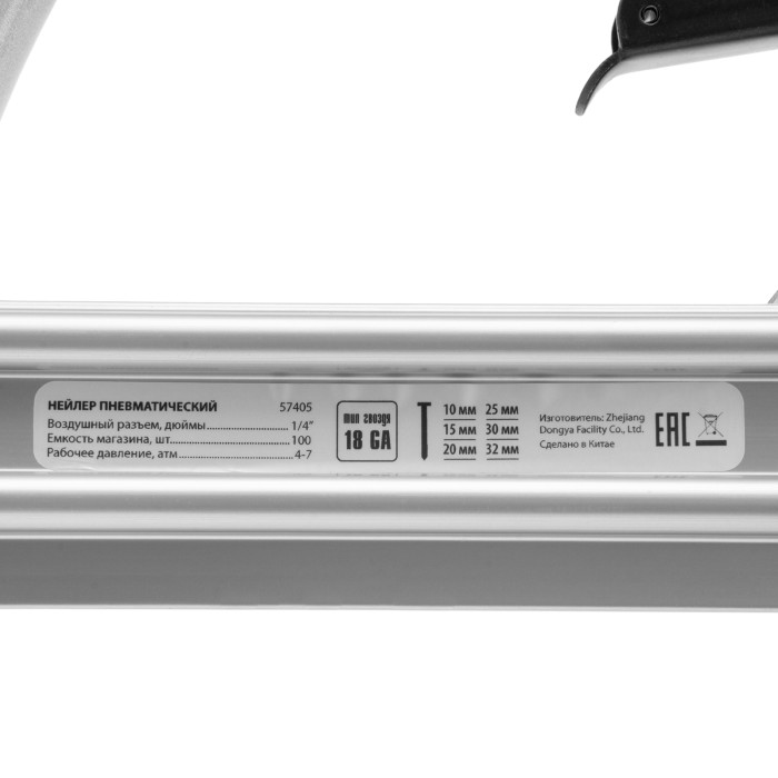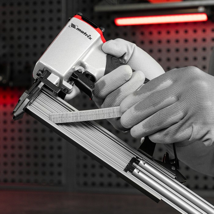 Пневматический нейлер Matrix 57405 предназначен для гвоздей 18GA длиной от 10 до 32 мм. Применяется во время строительства и ремонта, кровельных работ и производства мебели. С помощью нейлера можно закрепить паркетную доску, фанеру, ДВП, шифер, гипсокартон, ткань и бумагу.ПреимуществаМагазин на 100 гвоздей — одной обоймы хватает надолго, что позволяет сэкономить время на зарядку инструмента.Быстрая подготовка к работе — установка обоймы занимает несколько секунд.Прочность — алюминиевый корпус устойчив к механическим повреждениям.Комфортная работа — обрезиненная ручка обеспечивает удобный хват инструмента.Вес 1,2 кг — мастер сможет длительное время работать без усталости.Гарантия 3 года — высокое качество инструмента подтверждено производителем.