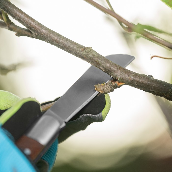Садовый складной нож Palisad 79003 длиной 173 мм, с прямым лезвием и деревянной рукояткой, предназначен для удаления сучьев, нарезки черенков, срезания шипов, зачистки срезов и т.д. Складной нож удобен и безопасен в хран...